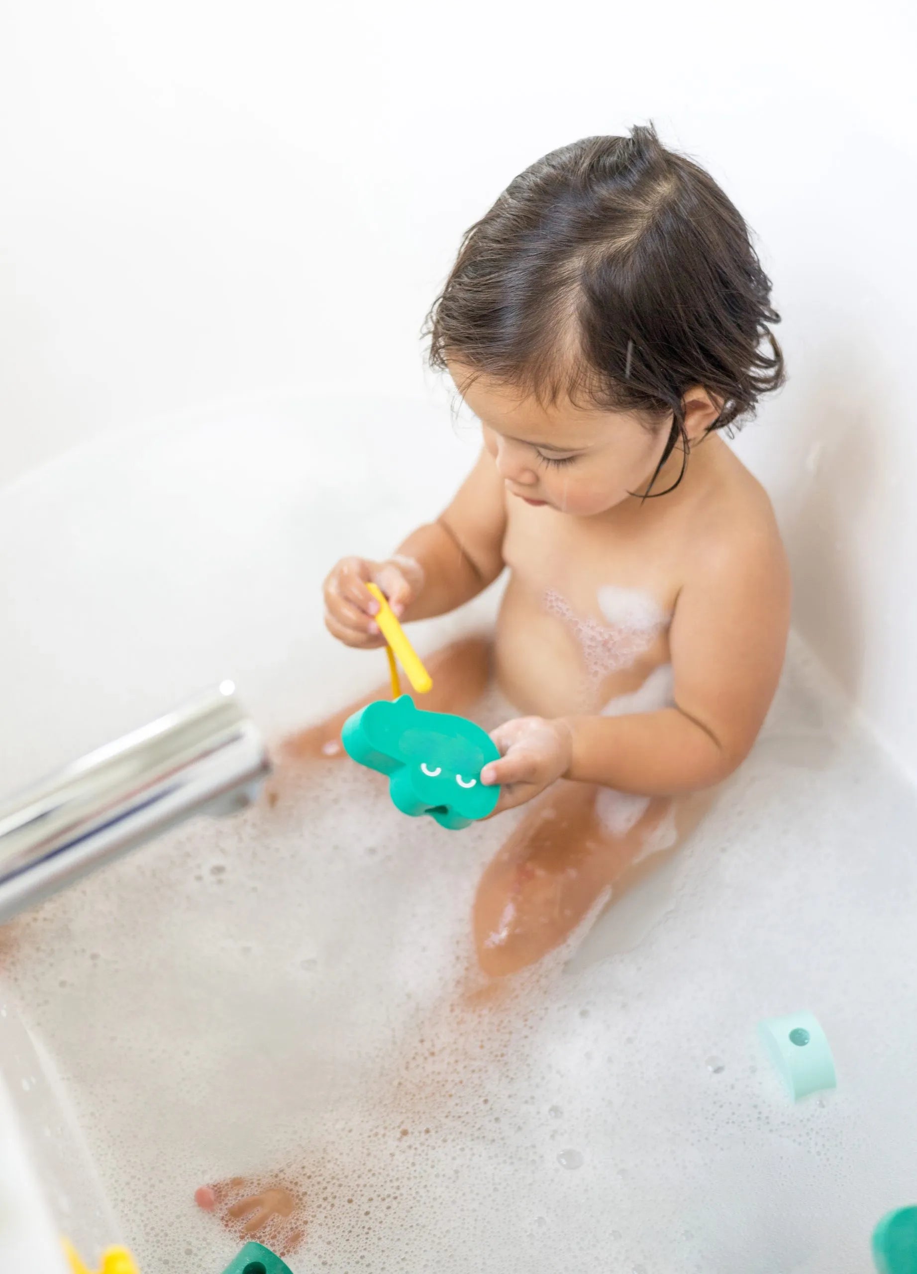 As from 10 months your little ones will be able to play with the large soft foam blocks that float on the water and stick to the side of the tub. As from 18 months they will be able to start lacing the beads together using the needle stimulating their cognitive ability and enhance his hand-eye coordination. Use the suction cup to hang your kids creation on your bathroom wall and give the room a kids friendly touch.