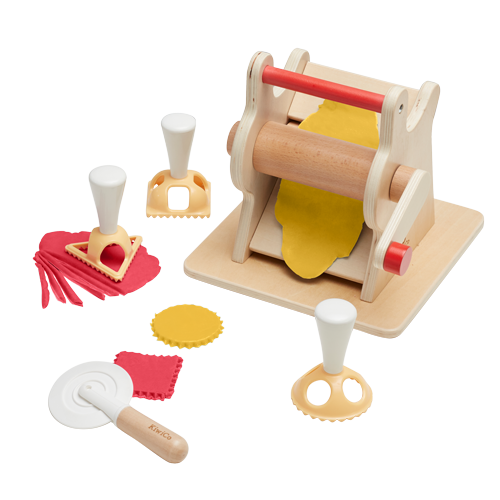 Roll and stamp your way to early math exploration — with the help of kid-friendly kitchen play! Use the pasta machine to explore pasta making and shapes with the shape pattern cards, then learn how to make circle, triangle, and square ravioli. The pasta-bilities are endless when it comes to math learning in the kitchen!